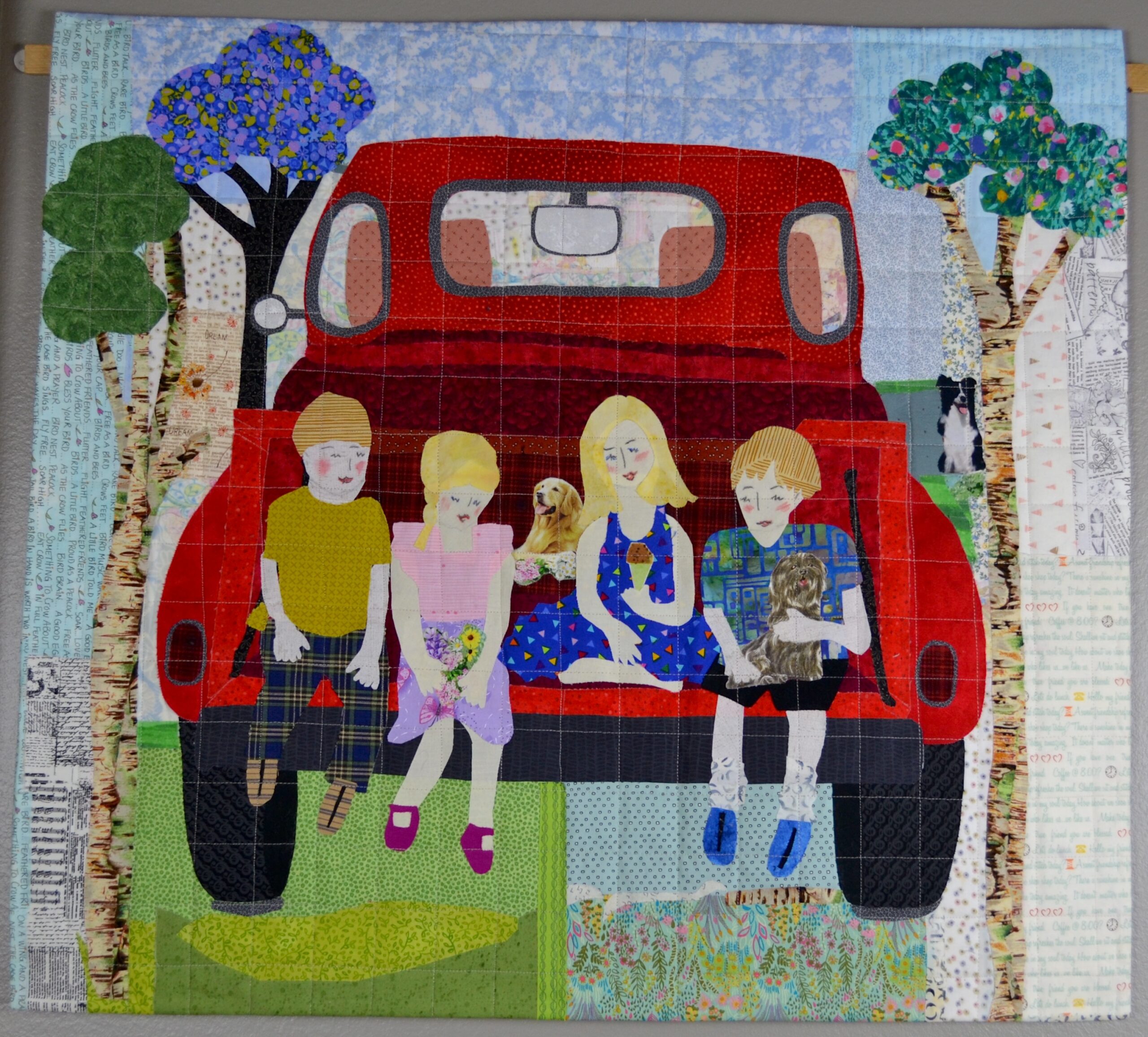 Fusible applique, cotton fabrics, machine quilted, intense pencils
