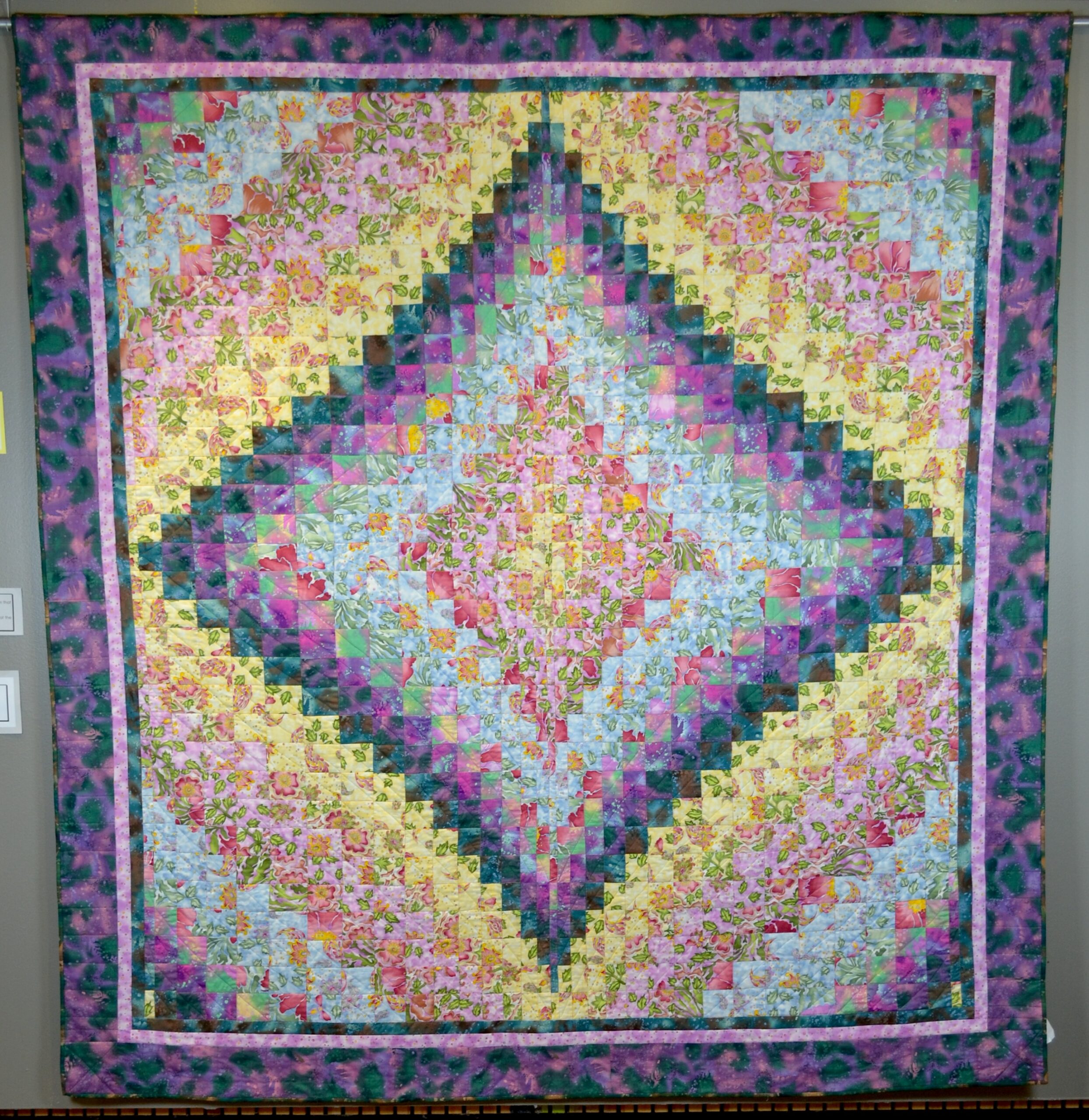 Bargello Quilt in pink, blue, green, and purpleRuth Stegmeyer