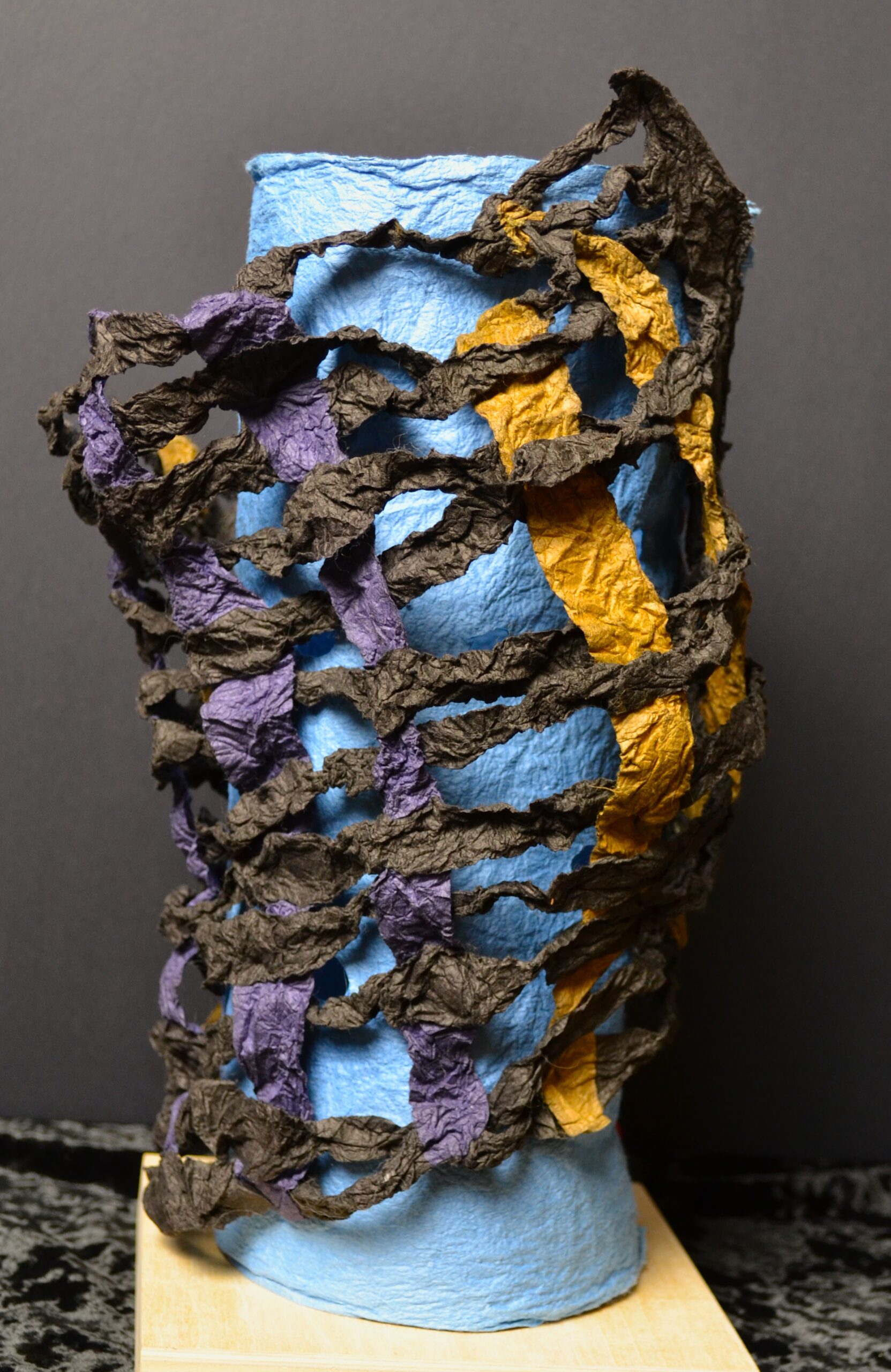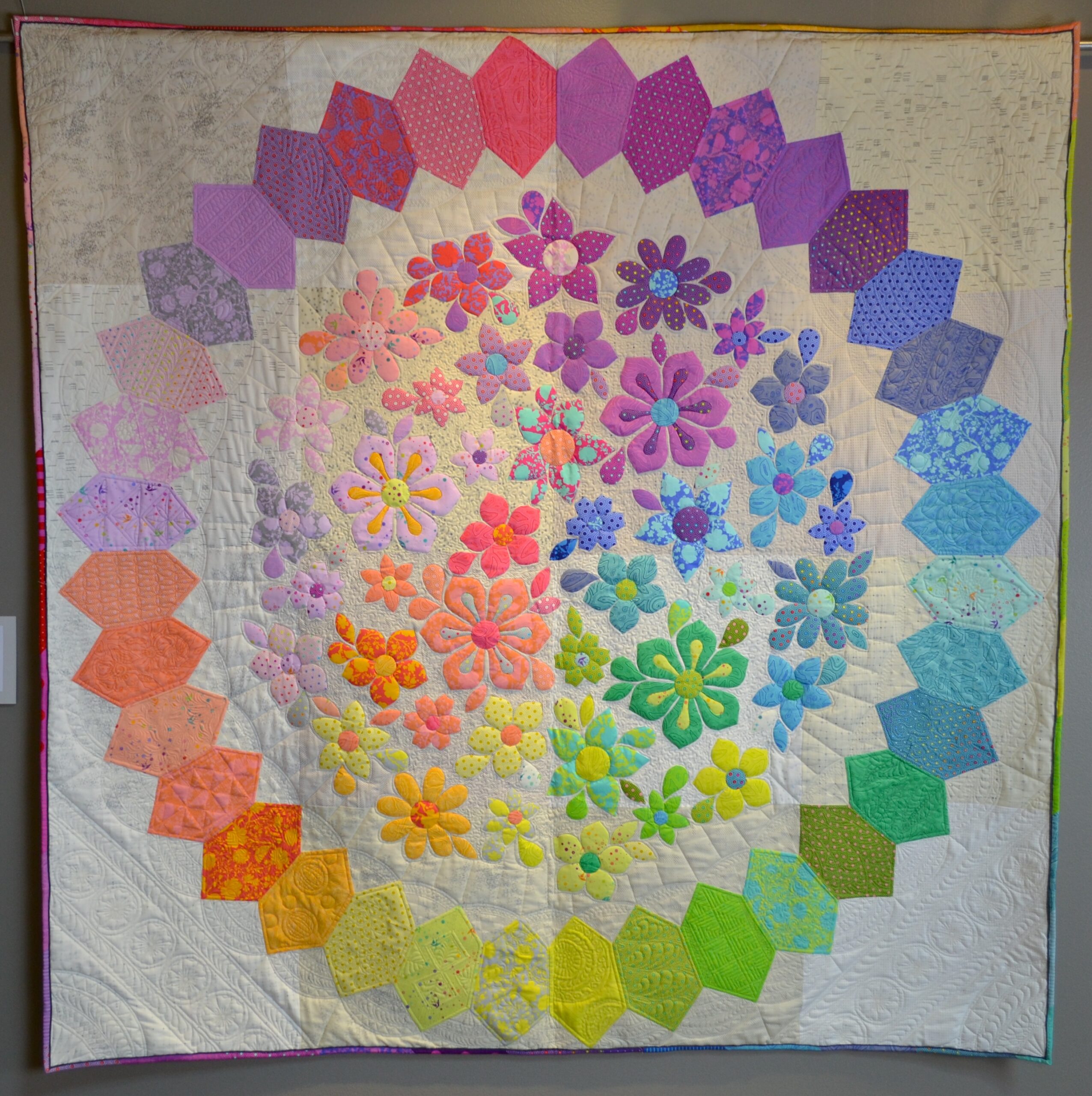 The “Calypso Quilt” is hand and machine pieced, hand and machine quilted.