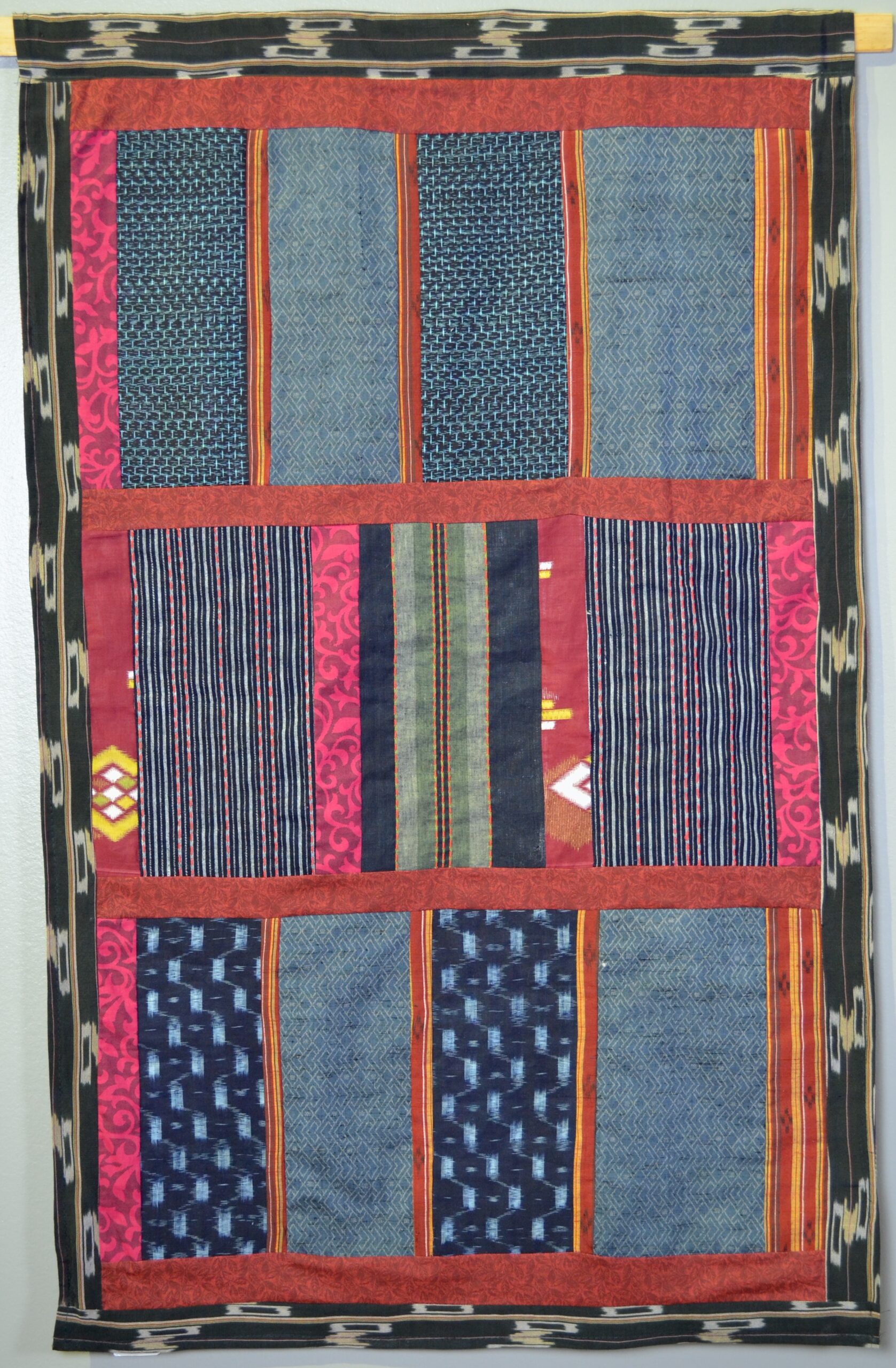 This piece has been machine sewn and hand stitched with boro stitching on the center panels.