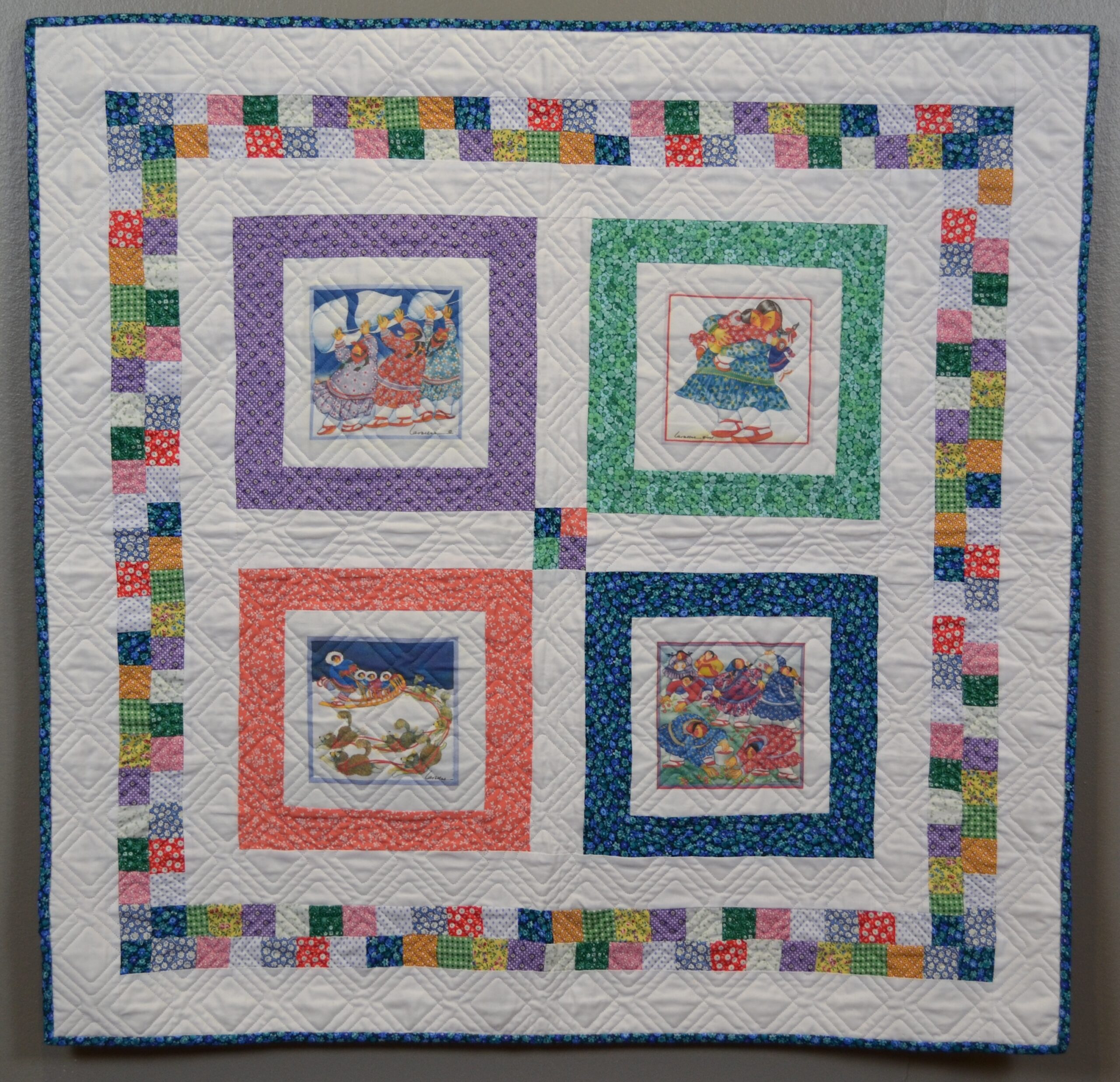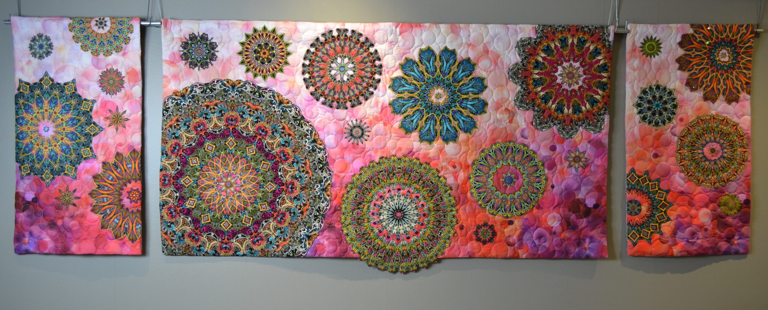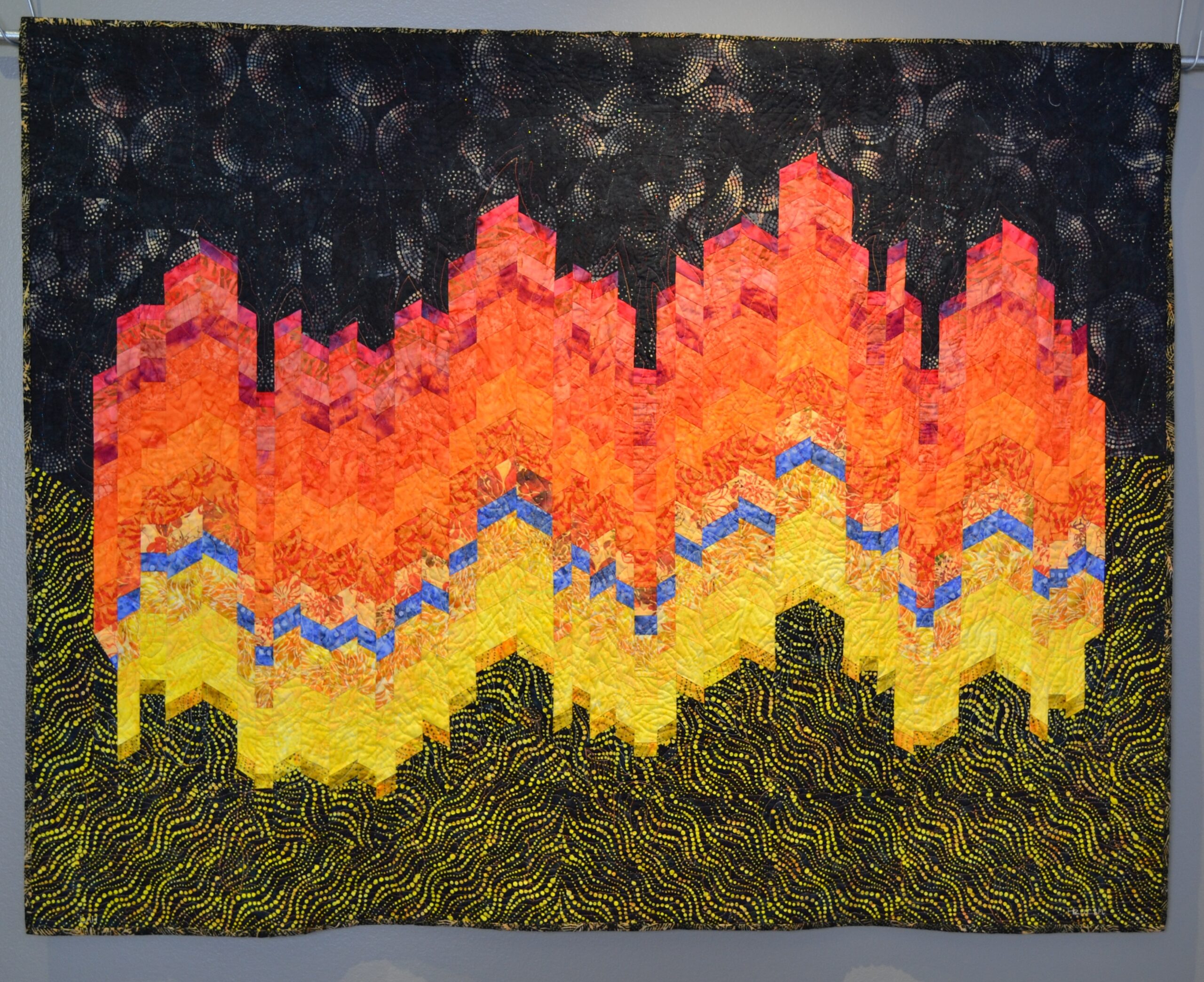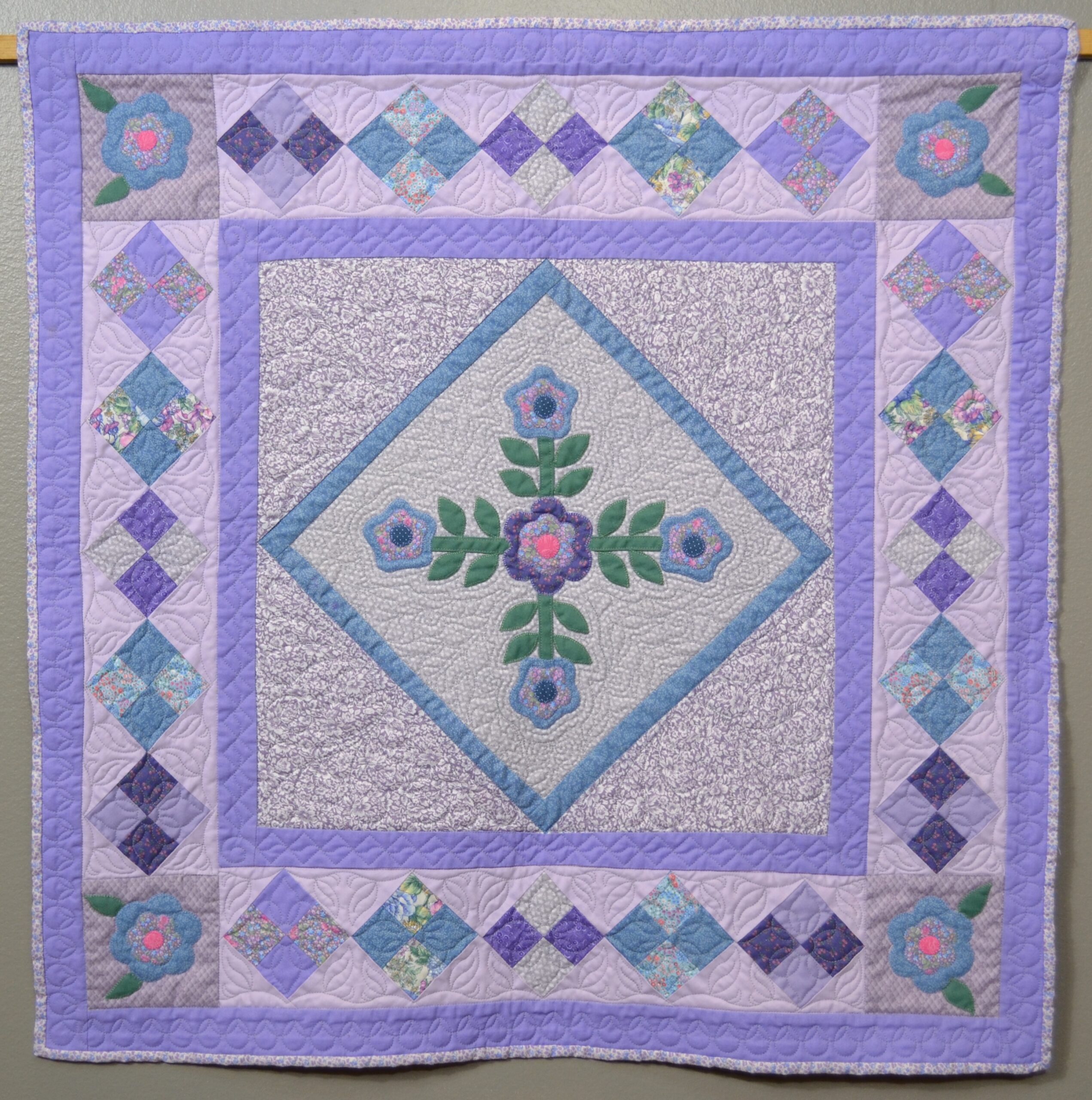 Machine pieced and long arm quilted. Started in a guild class with Irene Roderick.