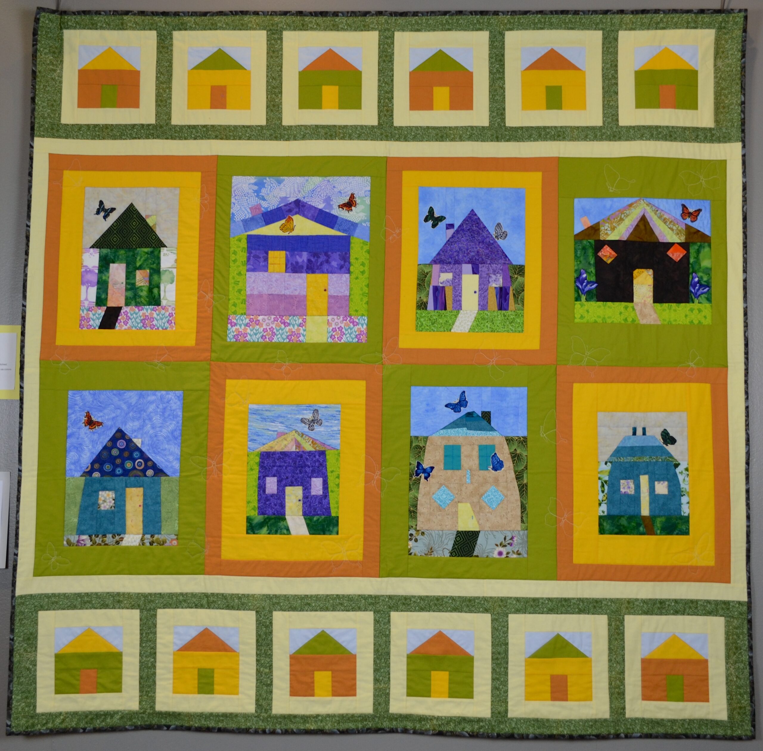 Machine pieced with raw edge appliqued butterflies. Machine quilted on a domestic machine. Embellished with ink tense pencil for smoke, doorknobs, etc.