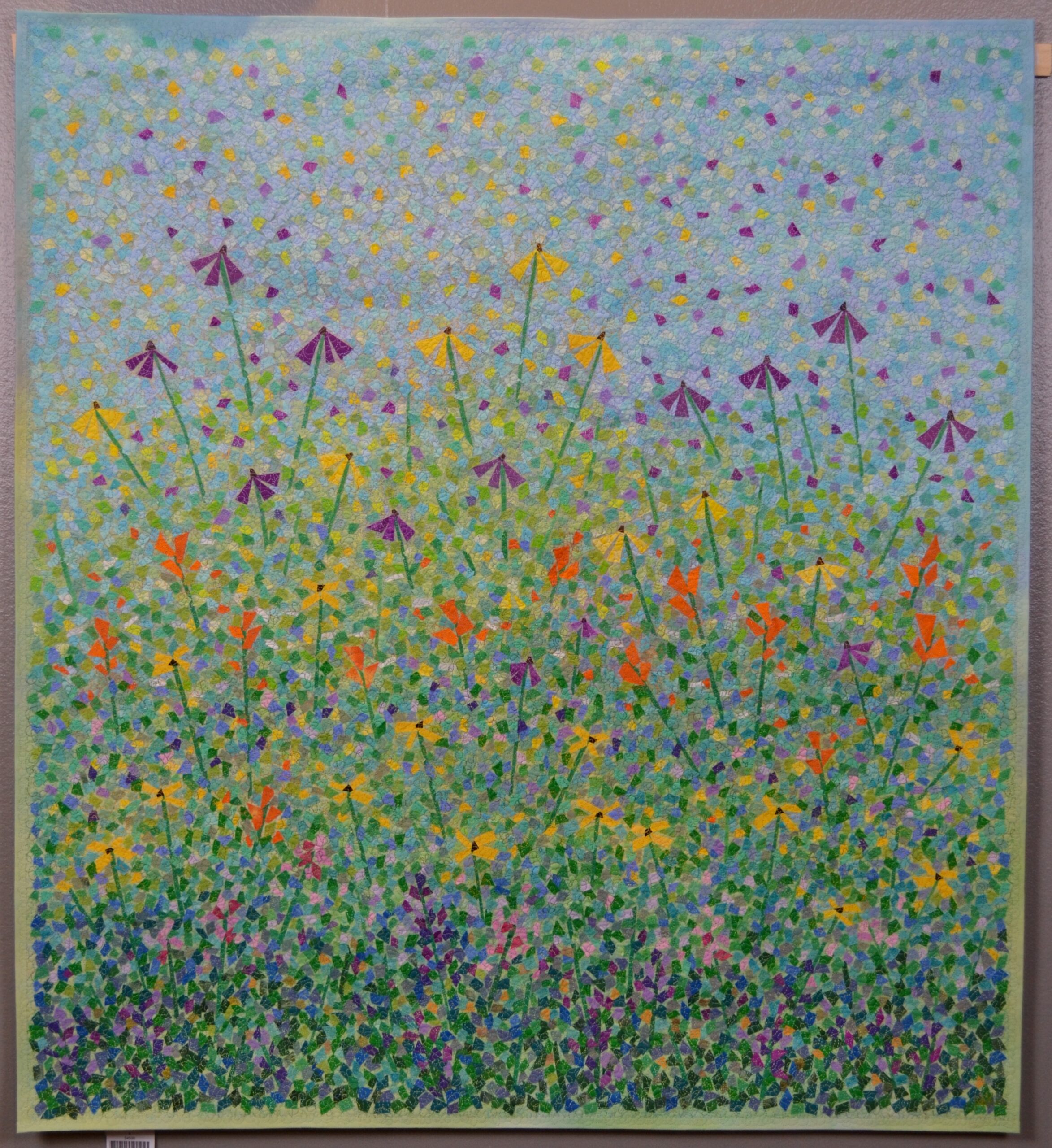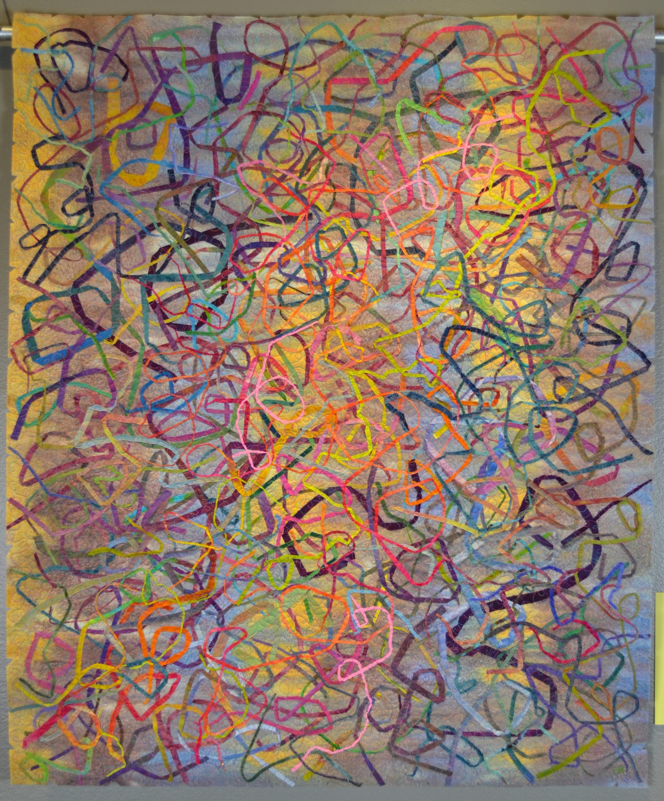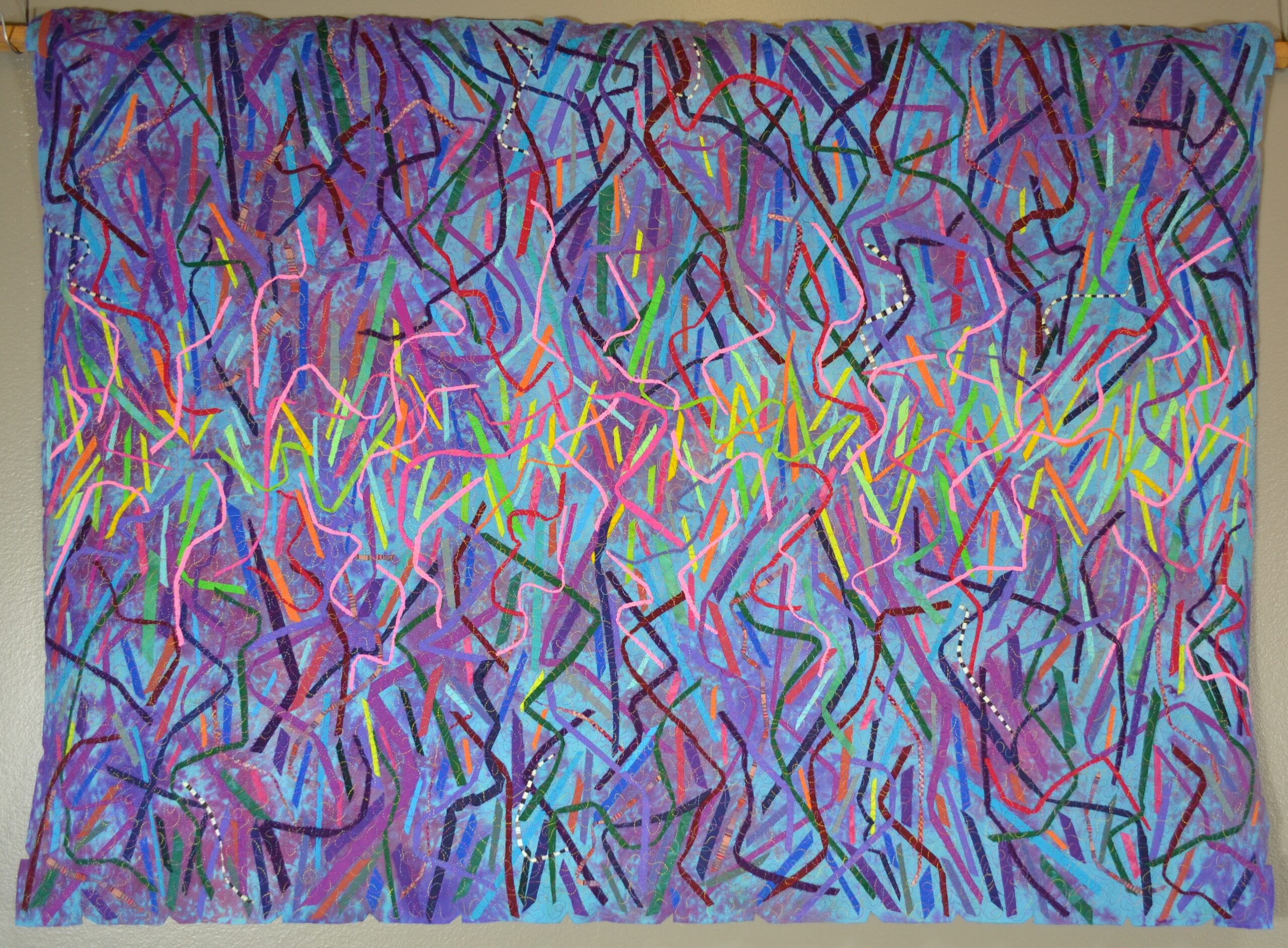 Hand-dyed and commercial fabric, Improvisational composition, Machine stitched.