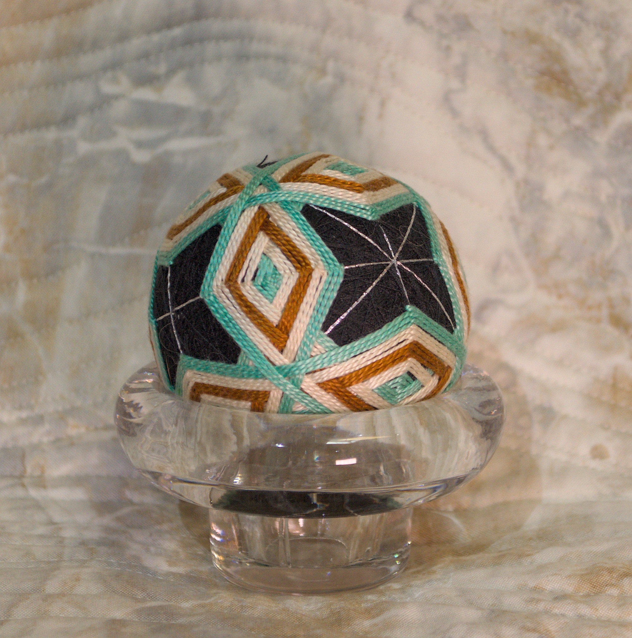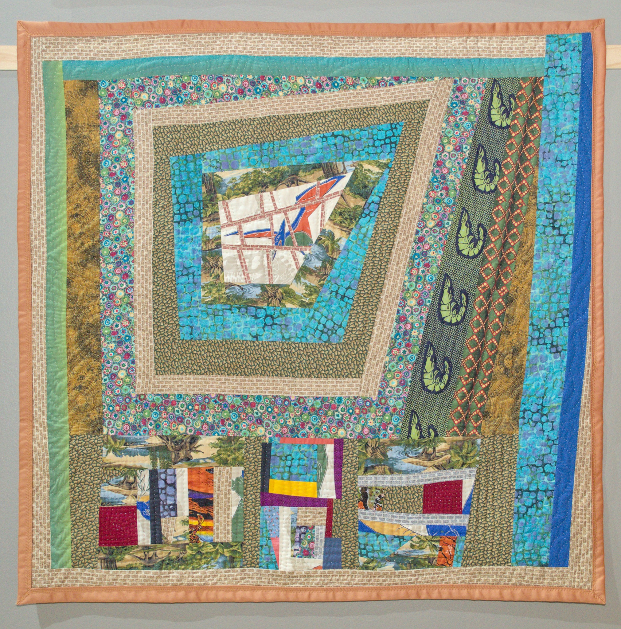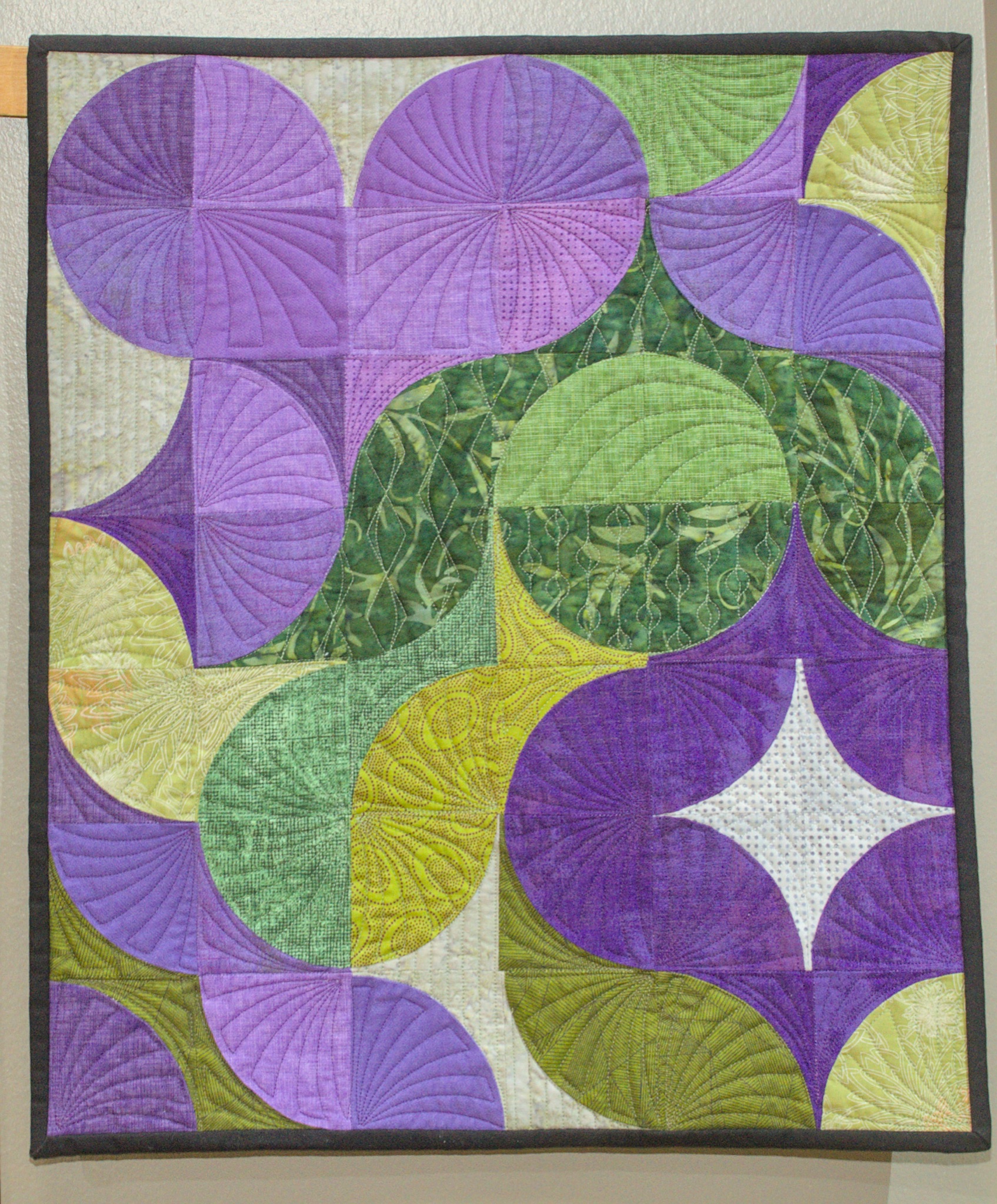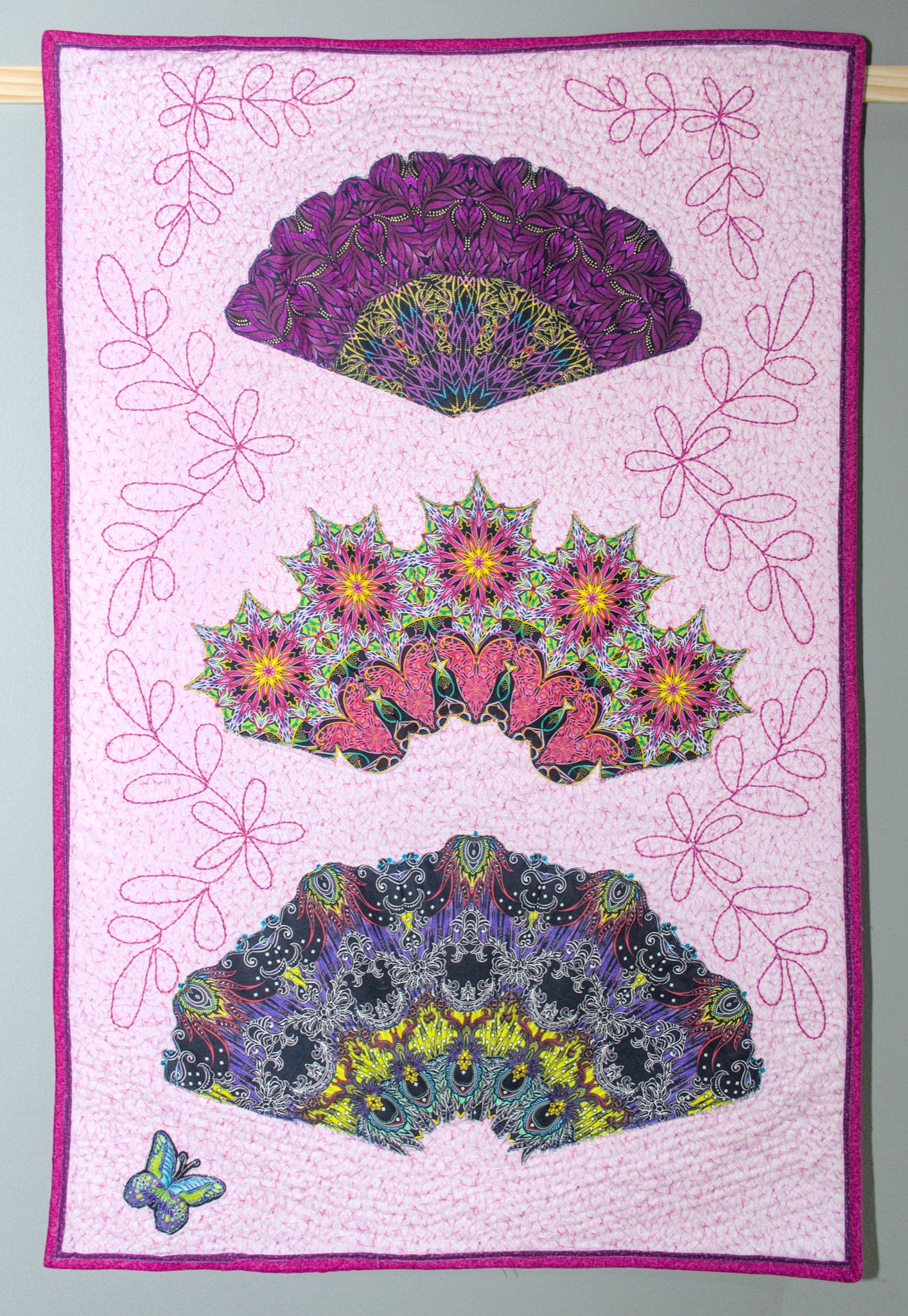 This piece is the result of a class I took with Edrene Heiss called Kaleidoscope Fans, using fabric with bilateral symmetry