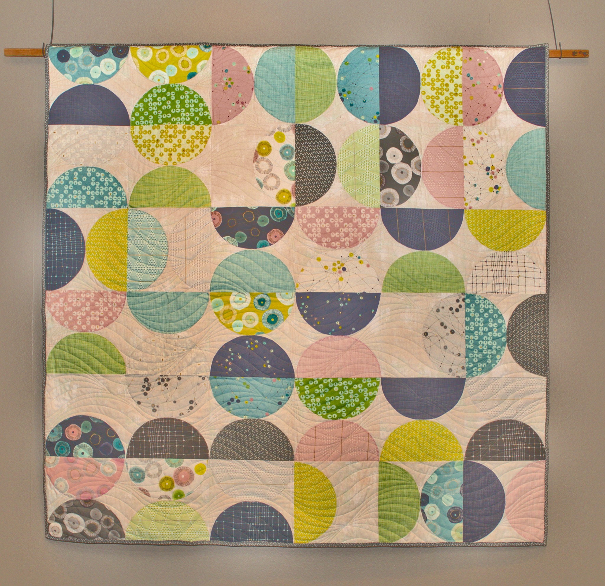 This was a happy quilt to make using the pattern and fabric line from Zen Chic. This was my first endeavor into appliqué, so I chose machine, raw edge. It sat in the “to be long armed” closet for a bit. My friend, Chris Piskule, did a lovely job of long arming the quilt.